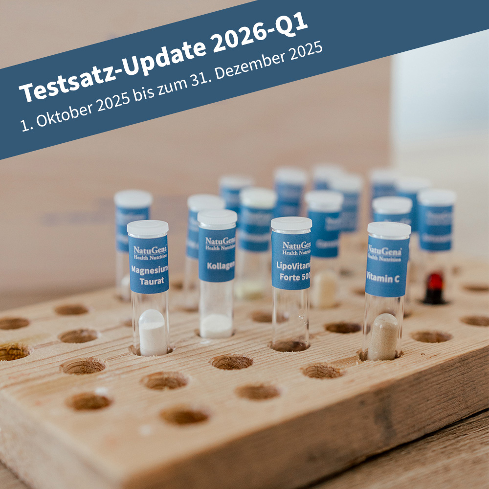 Der NatuGena-Testsatz enthält für über 40 NatuGena-Produkte je ein kleines Testsatzröhrchen mit einer Probe (Kapseln, Liquide, Presslinge und Pulver). Er ist besonders interessant für kinesiologisch testende Therapeuten.