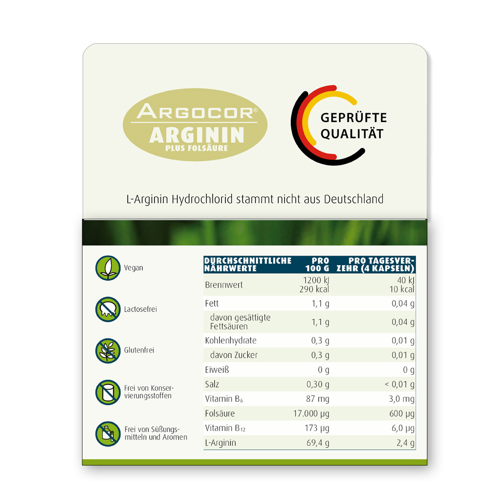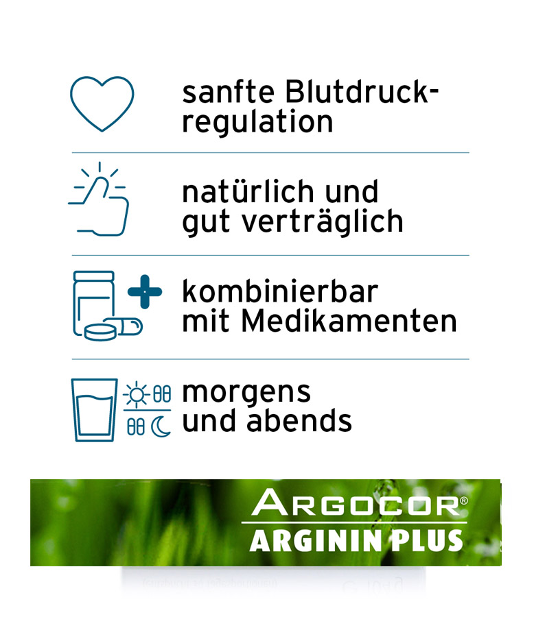 Das nutritive Konzept von Argocor basiert auf der gezielten Bereitstellung von L-Arginin in Kombination mit einem spezifischen Vitamin-Komplex (B6, B12 und Folsäure). Bei den genannten Indikationen besteht häufig ein krankheitsbedingt erhöhter Bedarf an diesen Nährstoffen, der über die normale Ernährung allein oft schwer zu decken ist. Physiologische Unterstützung: L-Arginin dient als Ausgangsstoff für die körpereigene Bildung von Stickstoffmonoxid (NO), welches eine zentrale Rolle bei der Regulation der Gefäßweite spielt. Stoffwechsel-Balance: Die Vitamine B6, B12 und Folsäure unterstützen den Abbau von Homocystein. Ein balancierter Homocysteinspiegel ist essenziell für den Schutz der Gefäßwände und die Bioverfügbarkeit von Stickstoffmonoxid.