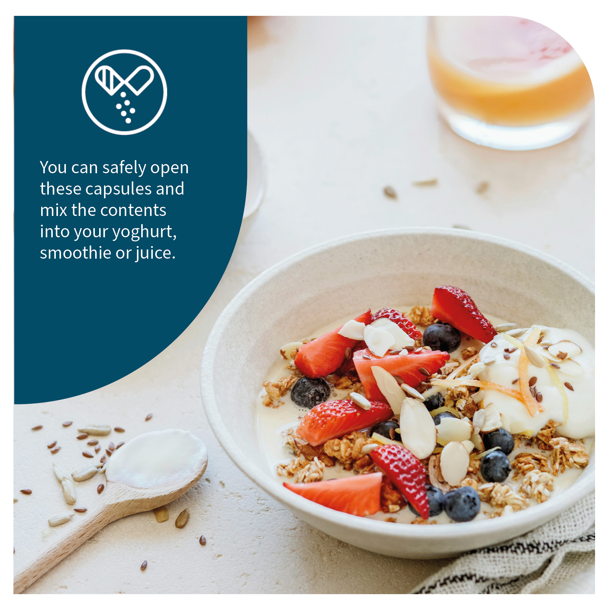 1-mal täglich 3 Kapseln. Optimal ist der Verzehr mindestens 30 Minuten vor oder 90 Minuten nach einer Mahlzeit mit 250 ml stillem, lauwarmem Wasser oder wahlweise mit einer halben frisch gepressten Zitrone.