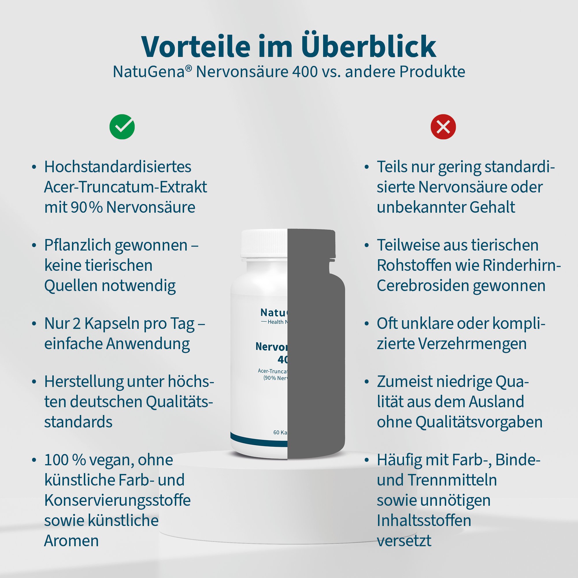 NatuGena Nervonsäure 400 – Natürliches Acer‑Truncatum‑Extrakt mit 90 % Nervonsäure. 60 vegane Kapseln für eine 30‑Tage‑Versorgung bei 2 Kapseln täglich.