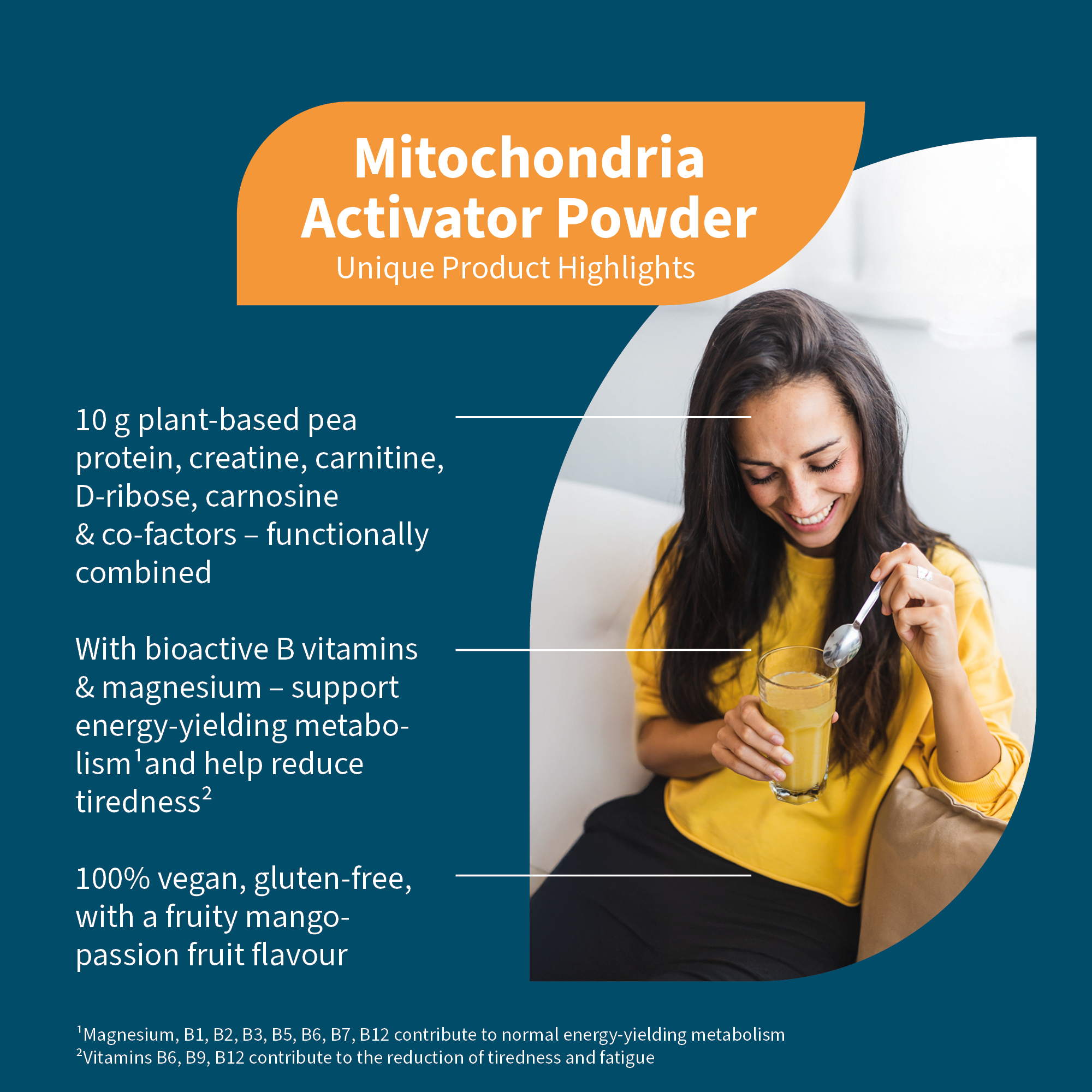 * Pantothenic acid (B5) contributes to normal mental performance and normal energy metabolism.