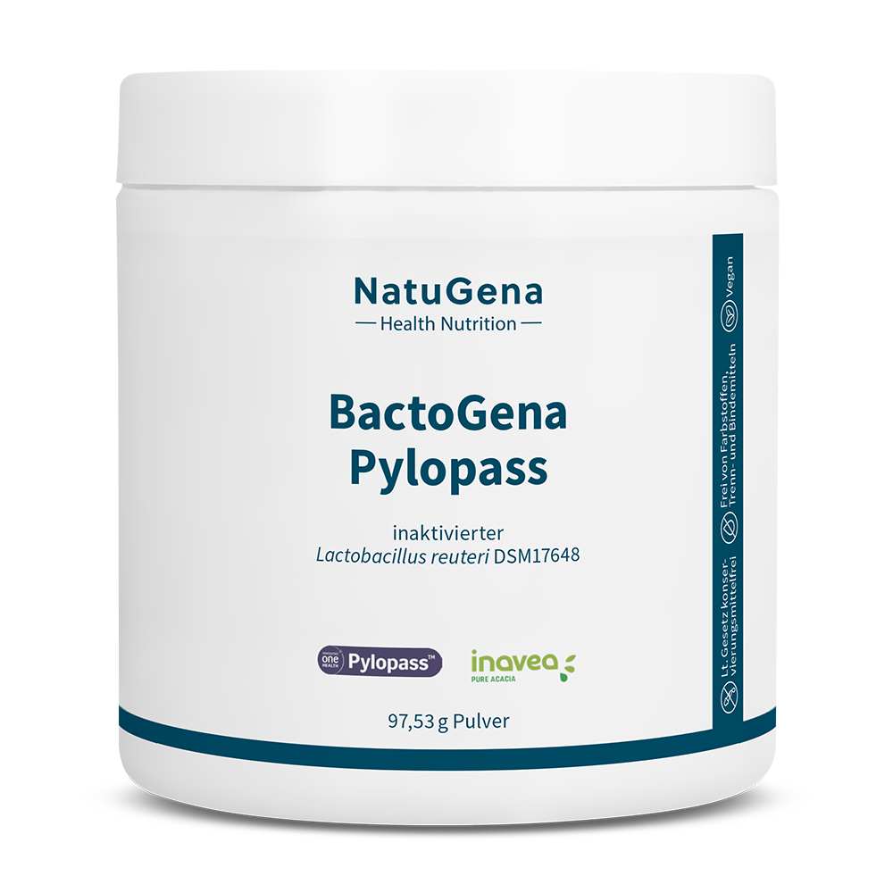 • 25 billion inactivated Lactobacillus reuteri DSM17648 (Pylopass™) per daily serving