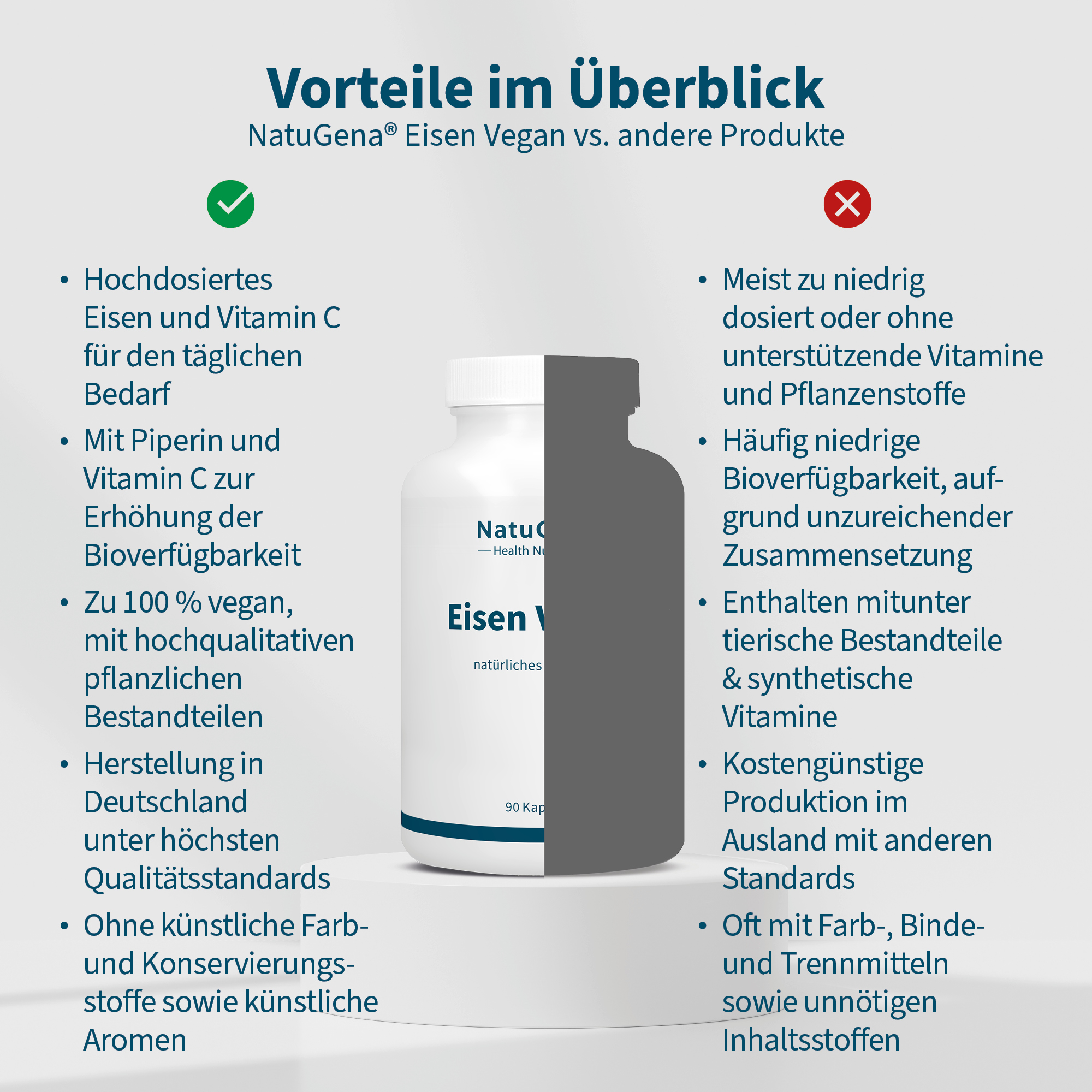 NatuGena Iron Vegan – 42 mg of natural iron from curry leaf extract, combined with vitamin C from acerola cherry. Enhanced with piperine from black pepper. 90 vegan capsules for a 30-day supply.