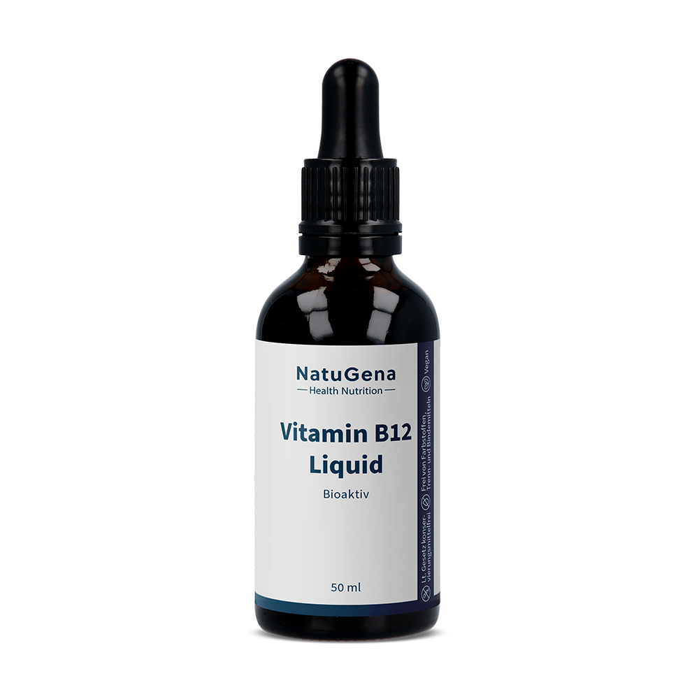 Vitamin B12 (Cobalamin) zählt zur Gruppe der wasserlöslichen Vitamine und weist eine komplexe Molekülstruktur auf. Der Tagesbedarf für einen durchschnittlichen Erwachsenen beträgt 4 μg (DGE). Eine höhere Einnahme von Vitamin B12 kann sinnvoll sein zur Prävention und bei Vitamin B12- Mängeln. Vitamin B12 Liquid enthält die zwei bioaktiven Vitamine Methylcobalamin und Adenosylcobalamin.