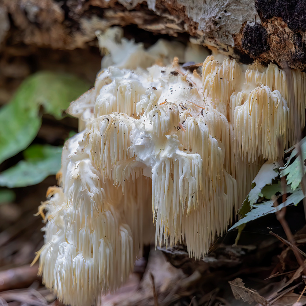 Hericium erinaceus ist auch als Löwenmähne, Igelstachelbart oder Affen­kopfpilz bekannt. Er sticht unter den Pilzen mit seinem auffälligen Äußeren heraus, sein fruchtkörperartiger Wuchs erinnert an Korallen oder ein zotteliges Fell, weshalb er im Volksmund fantasievolle Namen wie „Pom-Pom-Pilz“ erhalten hat.