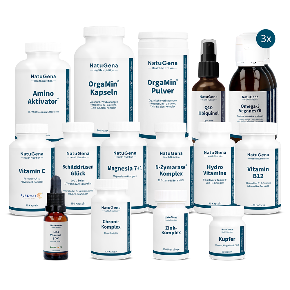 Der Säure-Basen-Haushalt ist neben dem Vitamin- und Mineralstoffhaushalt eine wesentliche Grundvoraussetzung für einen optimalen Stoffwechsel im Körper. Gemüse, Obst, Kräuter, Keimlinge, einige Nüsse (Mandeln, Walnüsse, Paranüsse, Macadamianüsse und Pistazien) sowie hochwertiges Öl (Lein-, Oliven- oder Rapsöl) liefern wertvolle organische Mineralstoffe, wie Kalium, Calcium und Magnesium, aber wenig Natrium. An diesem Vorbild orientiert sich das OrgaMin. Es enthält Mineralstoffe auf Basis organischer Citrate mit wenig Natrium und reichlich Magnesium.