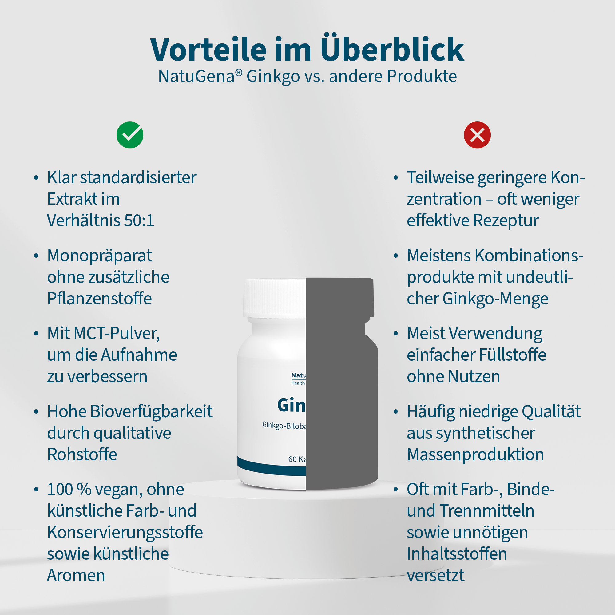 NatuGena Ginkgo – 120 mg Ginkgo-Biloba-Extrakt mit den Pflanzenstoffen Flavonglycoside und Terpenlactone. 60 Kapseln für eine 60-Tage-Versorgung.