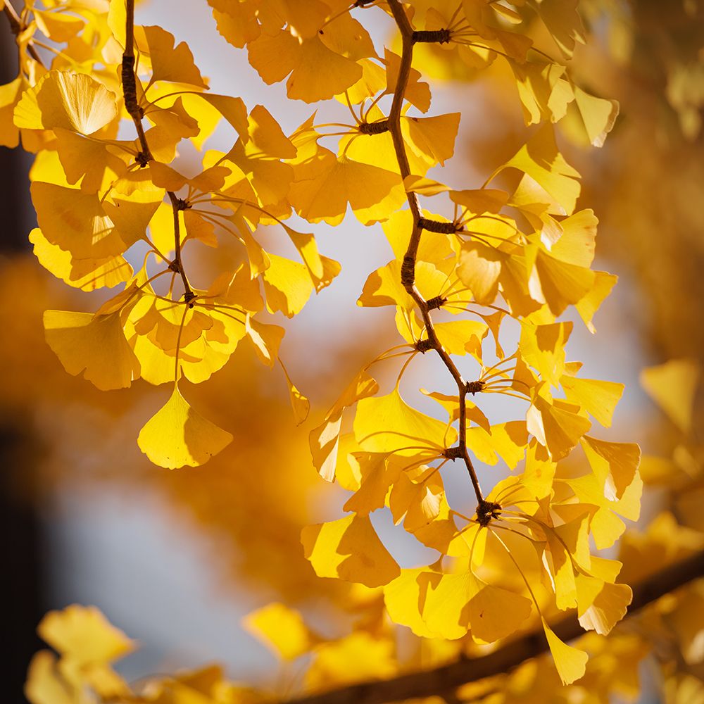 Der Ginkgo biloba stammt ursprünglich aus Ostasien und wird oft als „lebendes Fossil“ bezeichnet. Seit über 200 Millionen Jahren wächst er auf der Erde und hat selbst starke klimatische Veränderungen überstanden. Viele Menschen kennen Ginkgo als Baum, der mit Langlebigkeit und Klarheit verbunden wird. Mit seinen fächerförmigen Blättern, die sich im Herbst leuchtend gelb färben, verleiht der Ginkgo-Baum der Landschaft sein unverwechselbares Erscheinungsbild. Heute ist der Ginkgo nicht nur in seiner Heimat, sondern auch in vielen Re¬gionen der Welt verbreitet. Er gedeiht in Parks, Gärten und Städten, wo er für seine Widerstandsfähigkeit geschätzt wird. In der chinesischen Kultur hat der Baum seit Jahrhunderten einen besonderen Stellenwert und gilt als Symbol für Langlebigkeit und Beständigkeit.