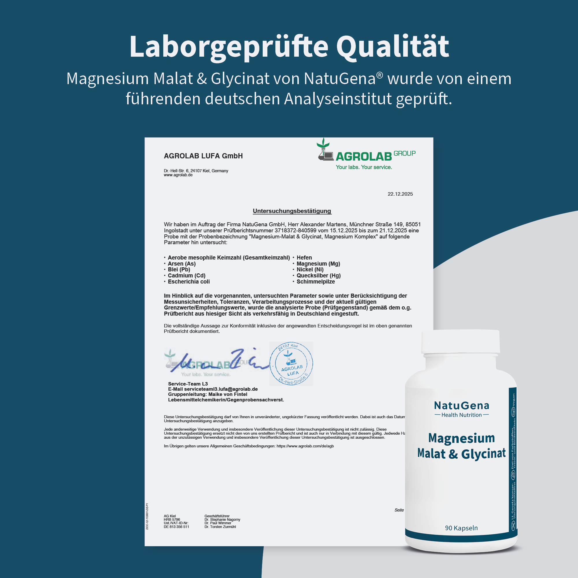 Magnesiummalat, Magnesiumbisglycinat, Überzugsmittel: Hydroxypropylmethylcellulose (HPMC).