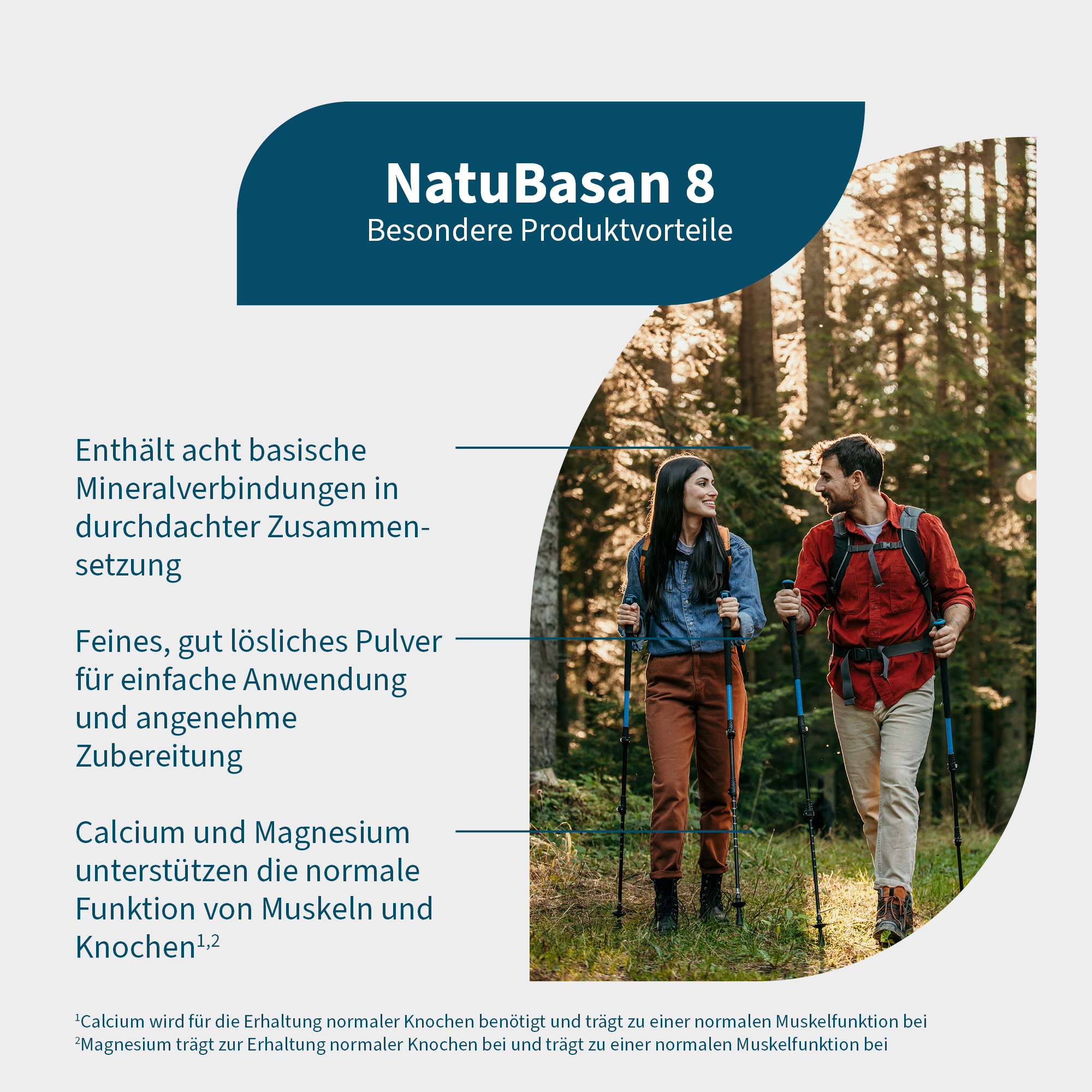 Ein gutes Essen, eine späte Stunde, ein voller Alltag, es gibt viele Momente, in denen unser inneres Gleichgewicht gefordert wird. NatuBasan 8 wurde für all jene entwickelt, die in ihrem Alltag bewusst auf eine ausgewogene Ernährung und mineralstoffreiche Ergänzung achten möchten. Die basische Rezeptur lässt sich leicht in den Alltag integrieren, das Pulver ist leicht löslich und kann mit Wasser oder Wasser mit Apfelsaft gemischt getrunken werden.