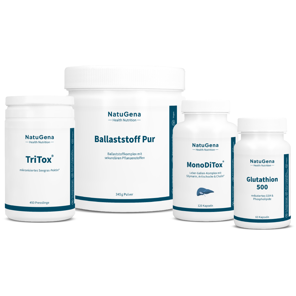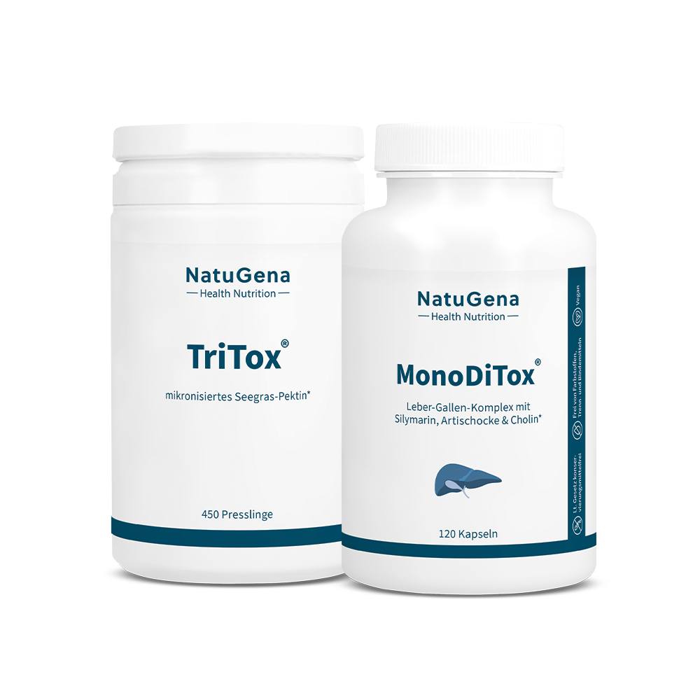 TriTox-Komplex ist ein Vorteilsset zur Unterstützung von Phase I bis III der Biotransformation zur Lösung sowie Neutralisierung von Stoffwechselendprodukten und Giftstoffen. Es hilft bei der Kopplung sowie anschließenden Ausscheidung von schädlichen Stoffen durch hoch- und niedermolekulare Pektine und glutenfreie Ballaststoffe, ohne die Darmflora zu belasten.