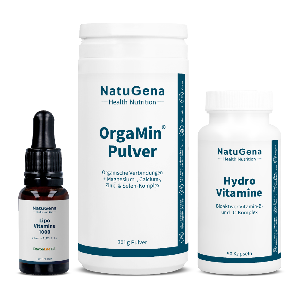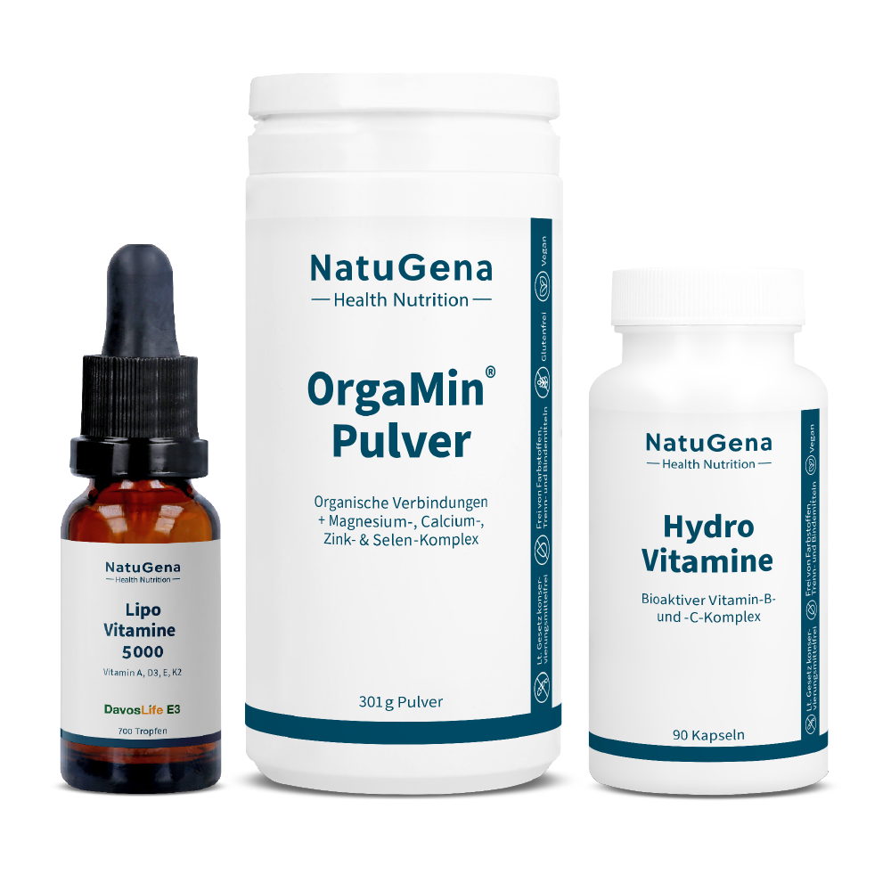 • Vitamin C, LipoVitamine 1000 (Vitamin E, D, K und A) und Zink & Selen