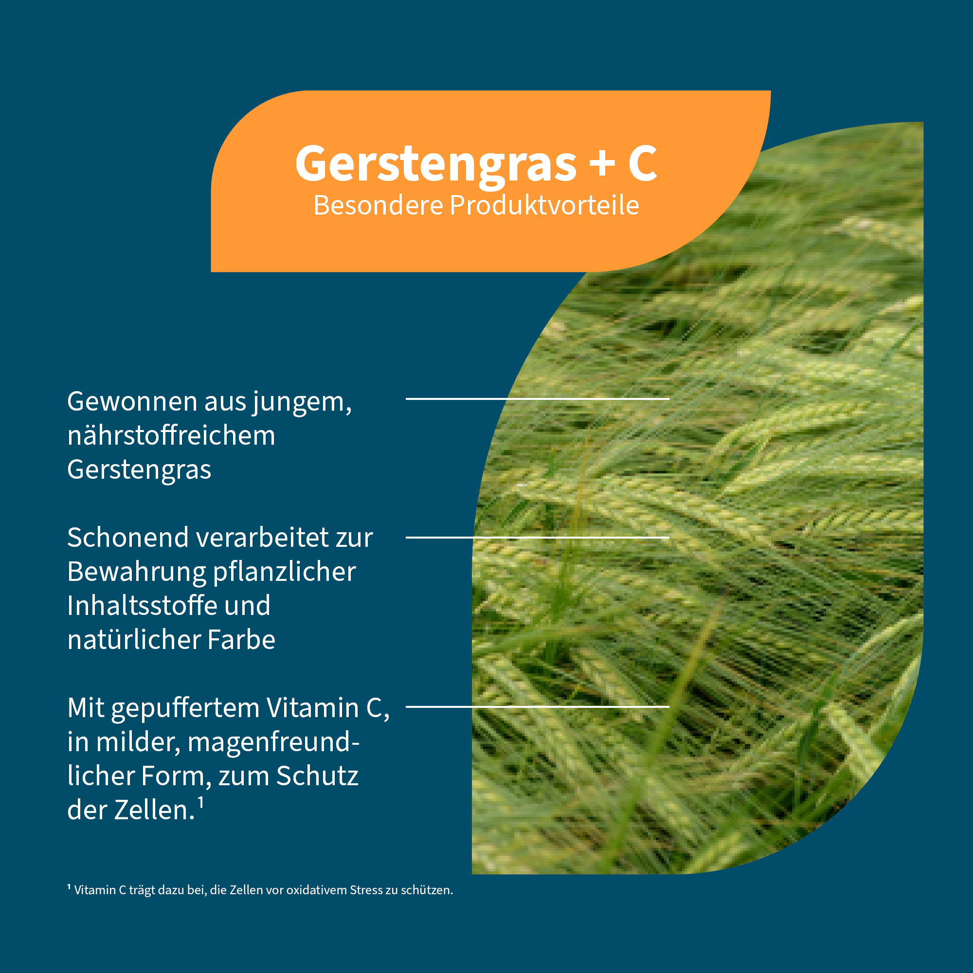 Gerstengras (lat. Hordeum vulgare) zählt zu den kraftvollsten Superfoods der Natur und bezeichnet das junge Blattgrün der Gerste, zart, frisch und voller Pflanzenkraft. Es wird geerntet, bevor sich die Ähren bilden, also bevor die Pflanze Gluten ausbildet. Daher sind unsere Gerstengras + C Kapseln glutenfrei. In dieser frühen Phase speichert das Gras eine Vielzahl natürlicher Substanzen wie Chlorophyll, sekundäre Pflanzenstoffe sowie lösliche und unlösliche Ballaststoffe. Die Pflanze wächst schnell und lässt sich vielseitig einsetzen, als Pulver, Saft oder Kapsel.