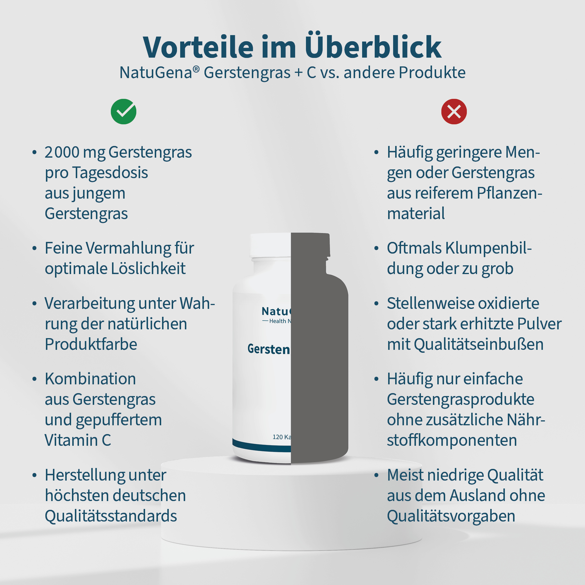 NatuGena Gerstengras + C liefert 2000 mg Gerstengraspulver pro Tagesdosis.