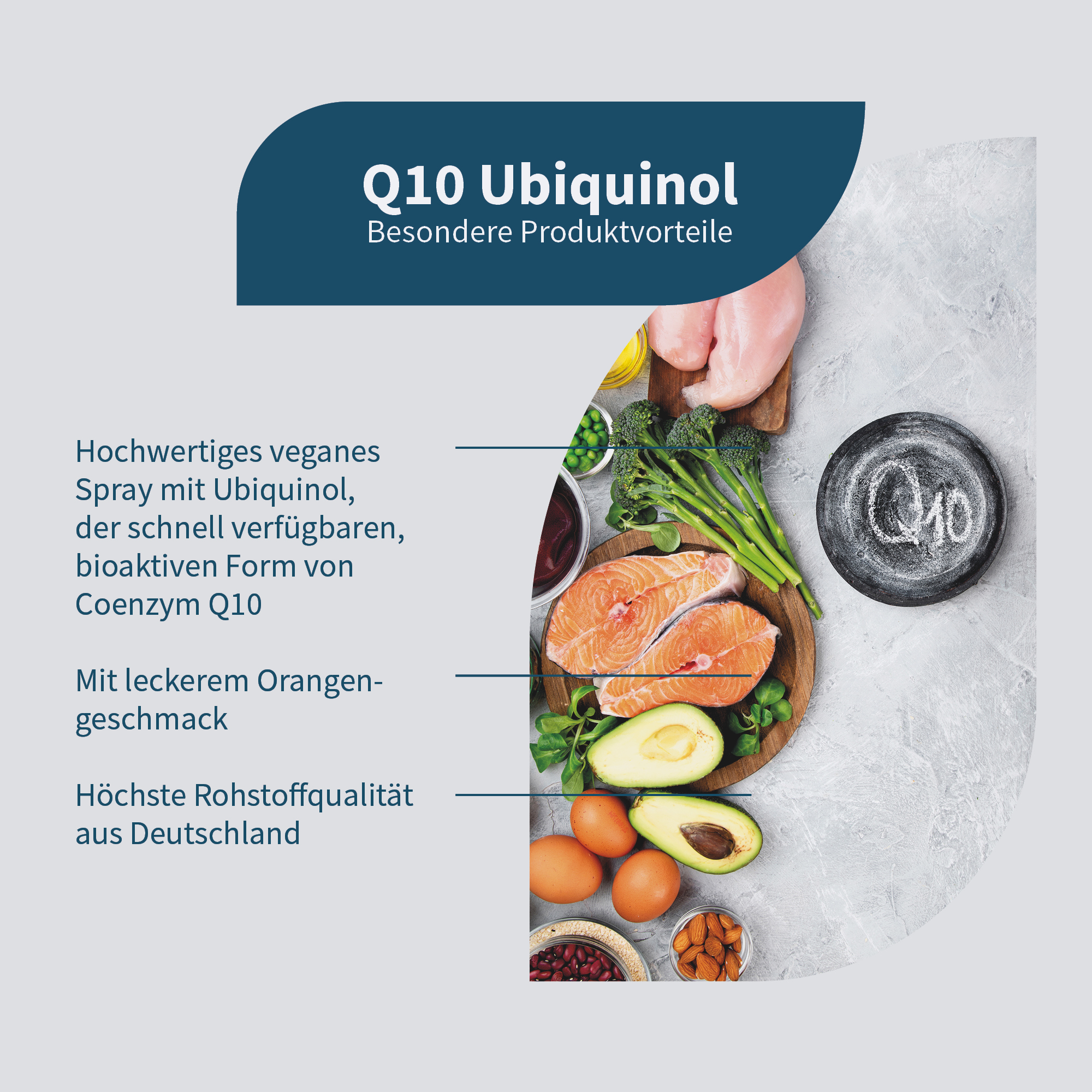 • Ubichinol – Bioaktive Form von Q10: Muss im Gegensatz zu Ubichinon nicht erst umgewandelt werden und steht dem Körper direkt zur Verfügung